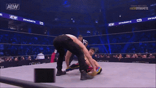 Os dois caem após o golpe, ele começa a se arrastar para ir fazer a contagem em Crazy, mas Jon Moxley consegue entrar rápido e aplicar um Low Blow!!!